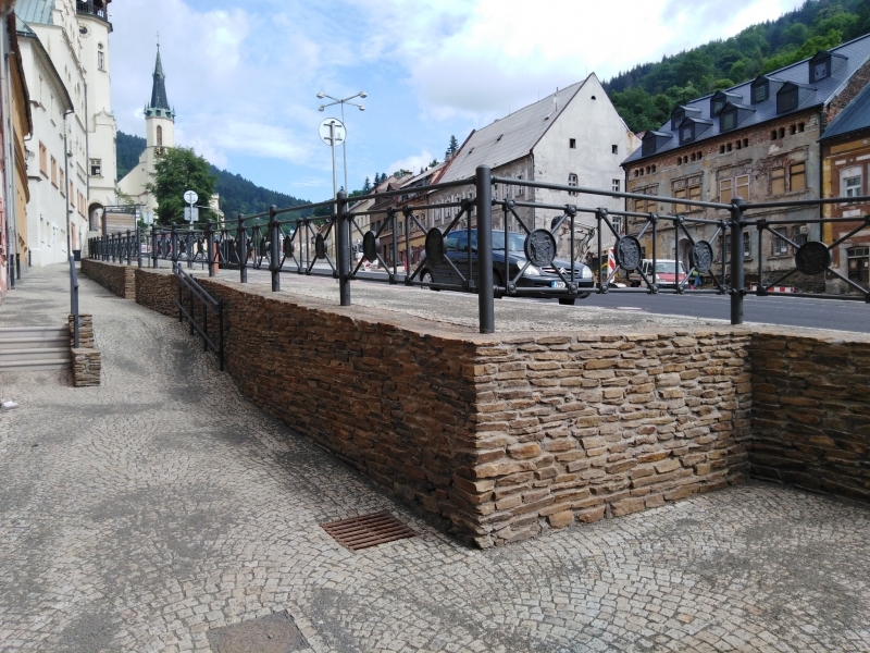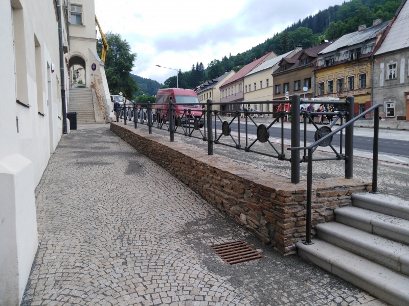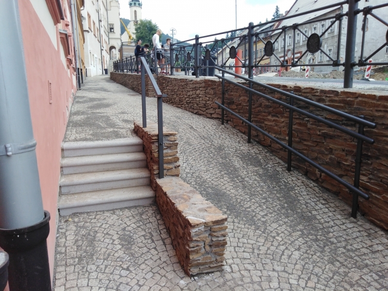 Na zdech lemijící rampu i schdiště je schodné zábradlí jako na zdi.